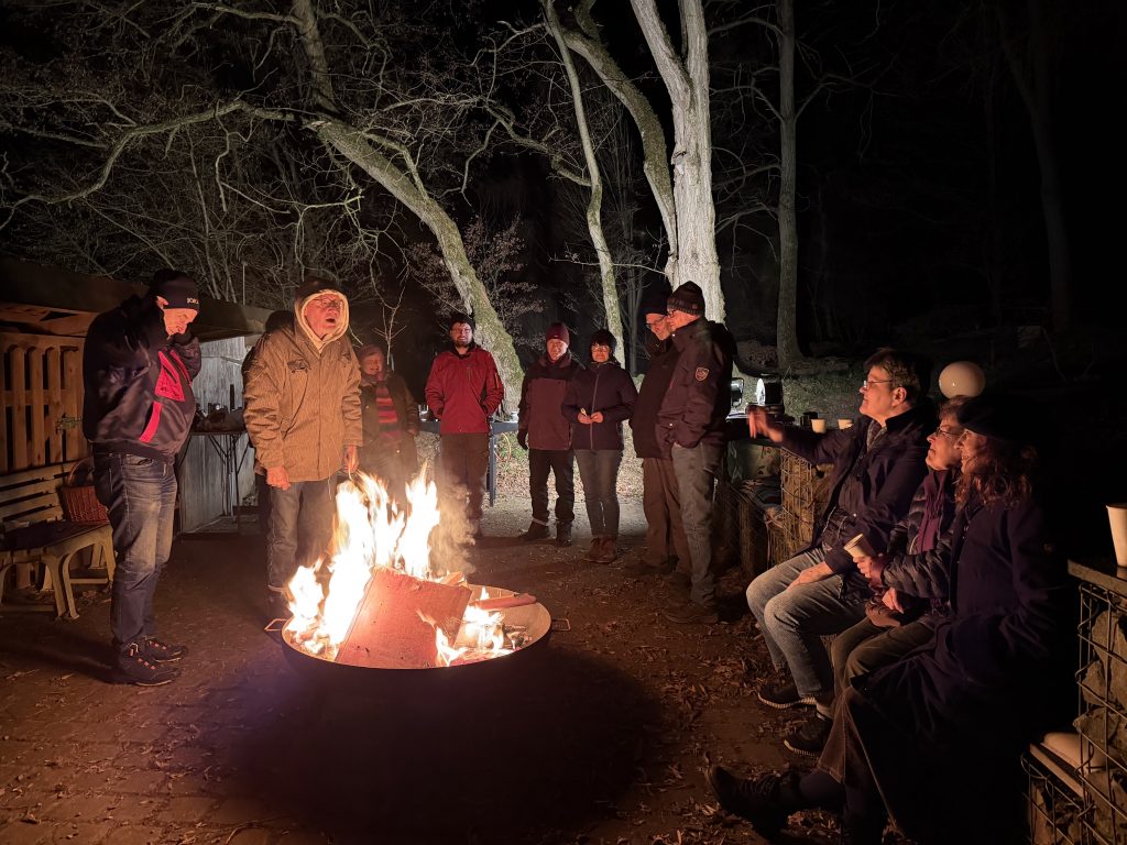 Bei frostigen Temperaturen und sternklarem Himmel haben wir am 27. Dezember gemeinsam das alte Jahr verabschiedet und wärmten uns an der großen Feuerschale. Für die innere Wärme gab es Rostbratwürste und als süße Variante frische Waffeln und süßen Tee, Apfelsaft und Glühwein, alles herrlich heiß, und natürlich wieder einmal viele nette Gespräche, herzliche Umarmungen und ein Gefühl von Gemeinschaft.