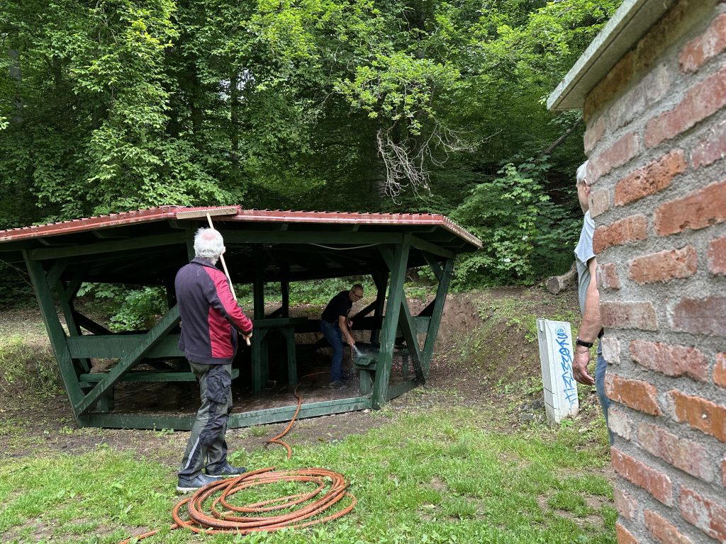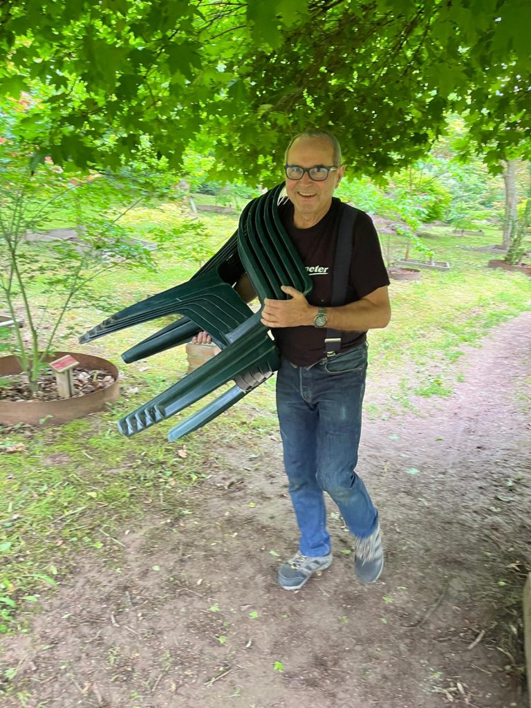 Wir haben geschruppt und gefegt, Pavillons aufgebaut, Tische, Bänke und Stühle geschleppt, den Weg zum Ahornpark gemäht und die neue kleine Waldbühne geschmückt.