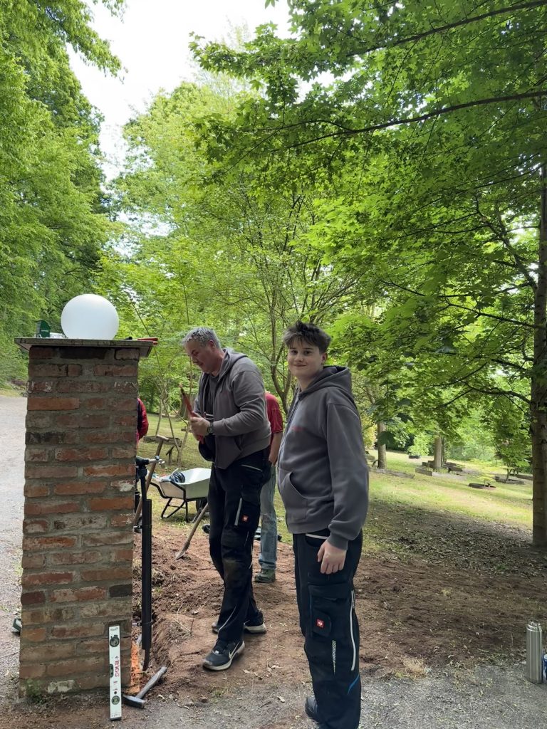Zwei Tage vor dem Ahornparkfest hat Holger Jülich die von uns zuvor verlegte und zugebuddelte Wasserleitung angeschlossen. Geholfen hat ihm dabei sein Sohn Max, der seit Jahren Mitglied in unserem Verein ist und mittlerweile vom „Ahörnchen“ zu einem jungen Mann herangewachsen ist.