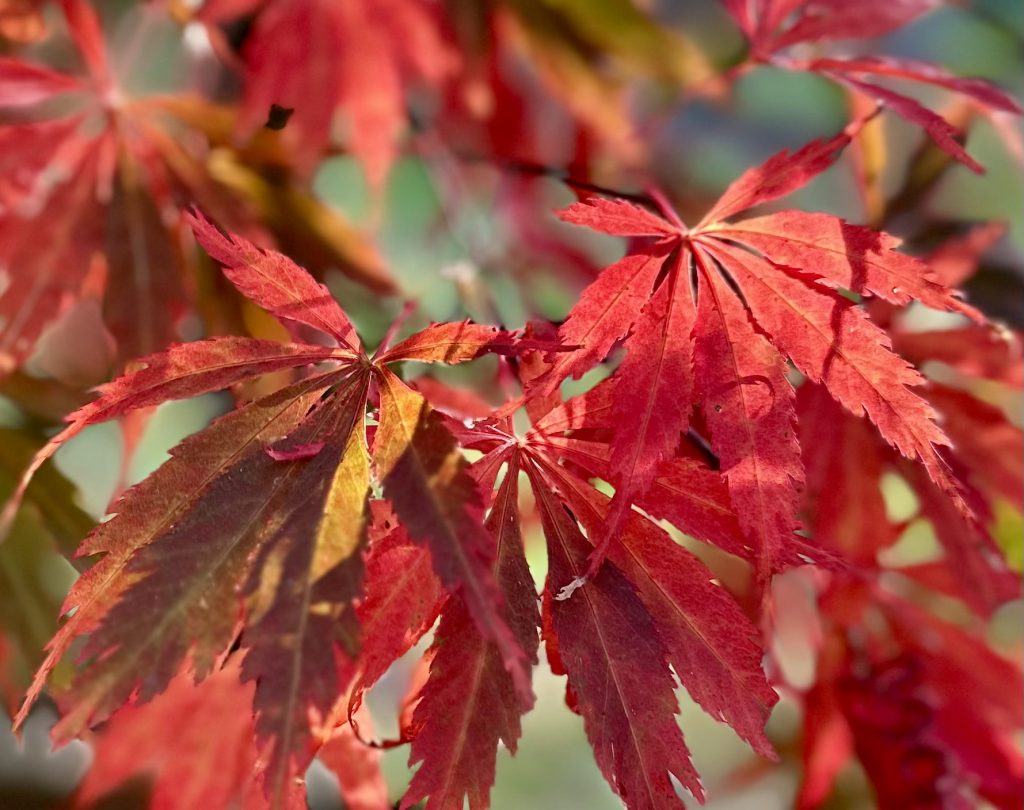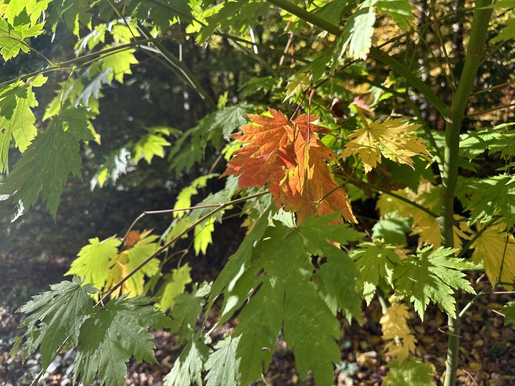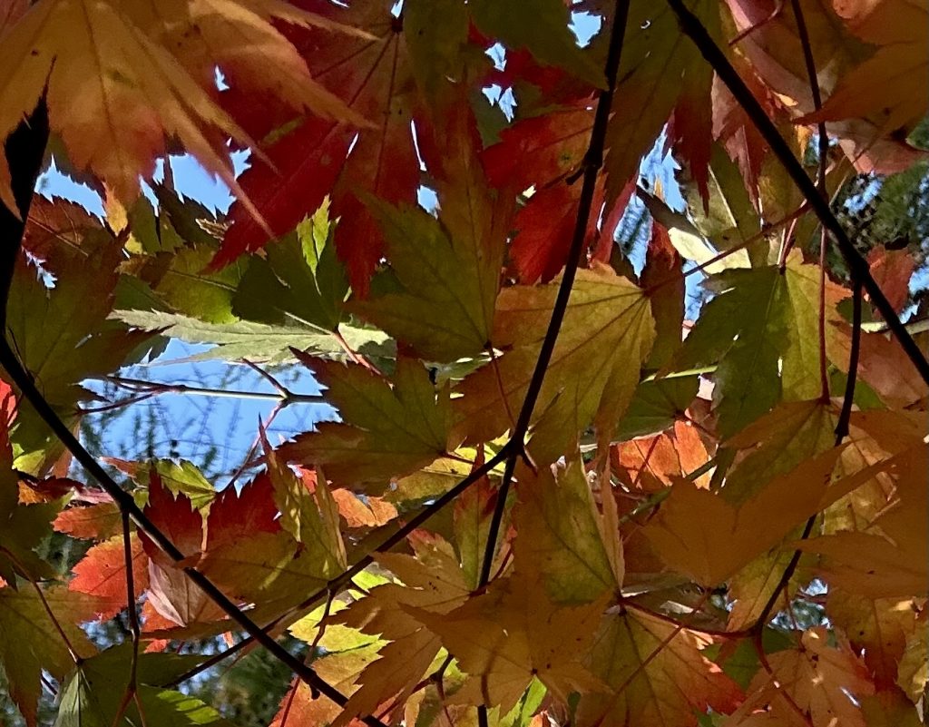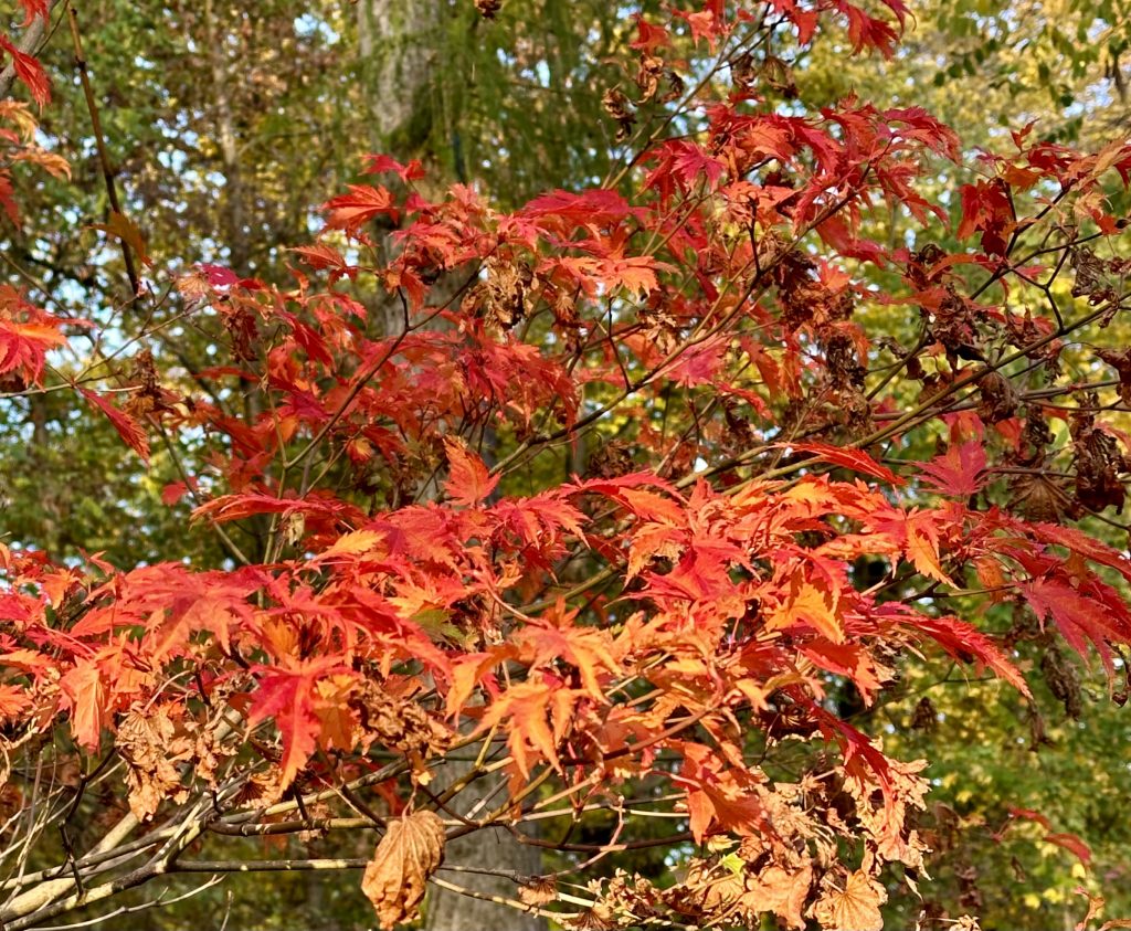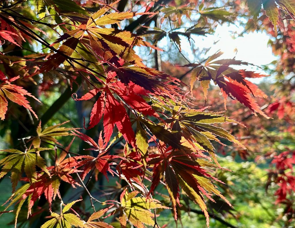 Der Herbst stand auf der Leiter und nun leuchten und funkeln die Ahornblätter in scheinbar unendlichen Farbtönen und der Anblick wandelt sich mit dem Lauf der Sonne immer wider neu … natürlich und wunderschön …