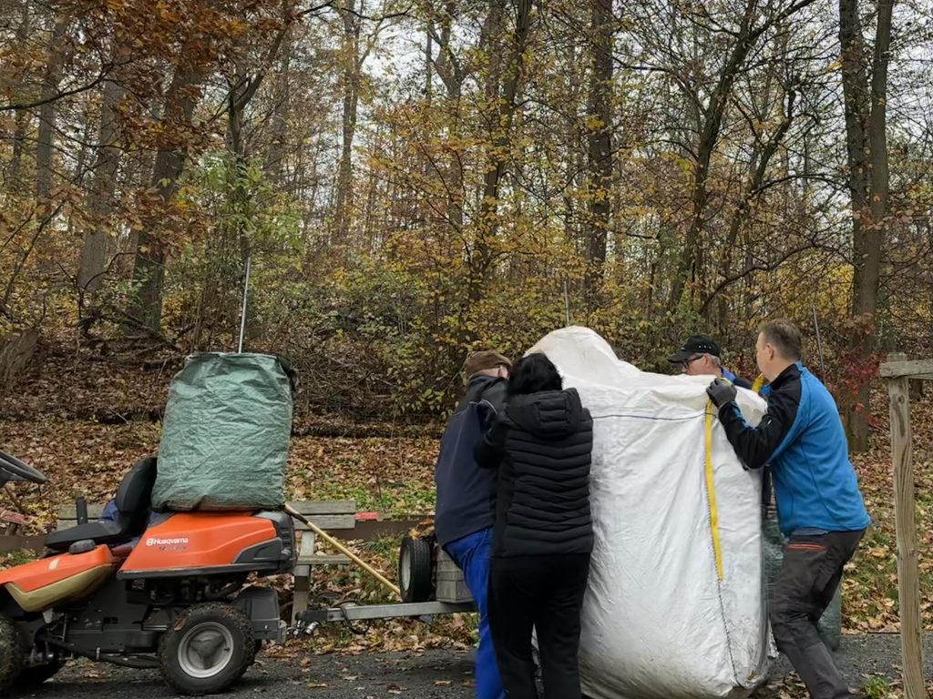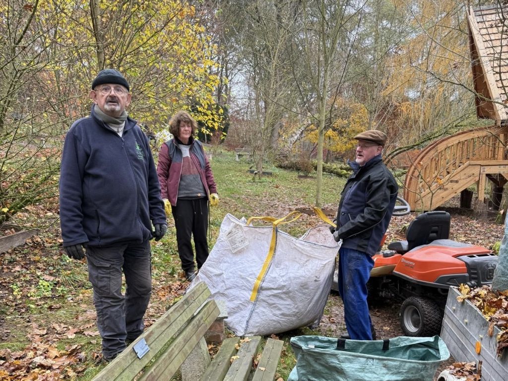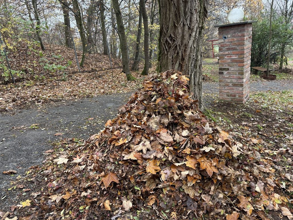 Deshalb treffen wir uns am Donnerstag, den 13.11.2025 ab 09.30 Uhr nochmals, um die großen Blatthaufen nach hinten in den Park zu transportieren. Wir freuen uns über jeden, der mit anpacken kann und helfen kommt.