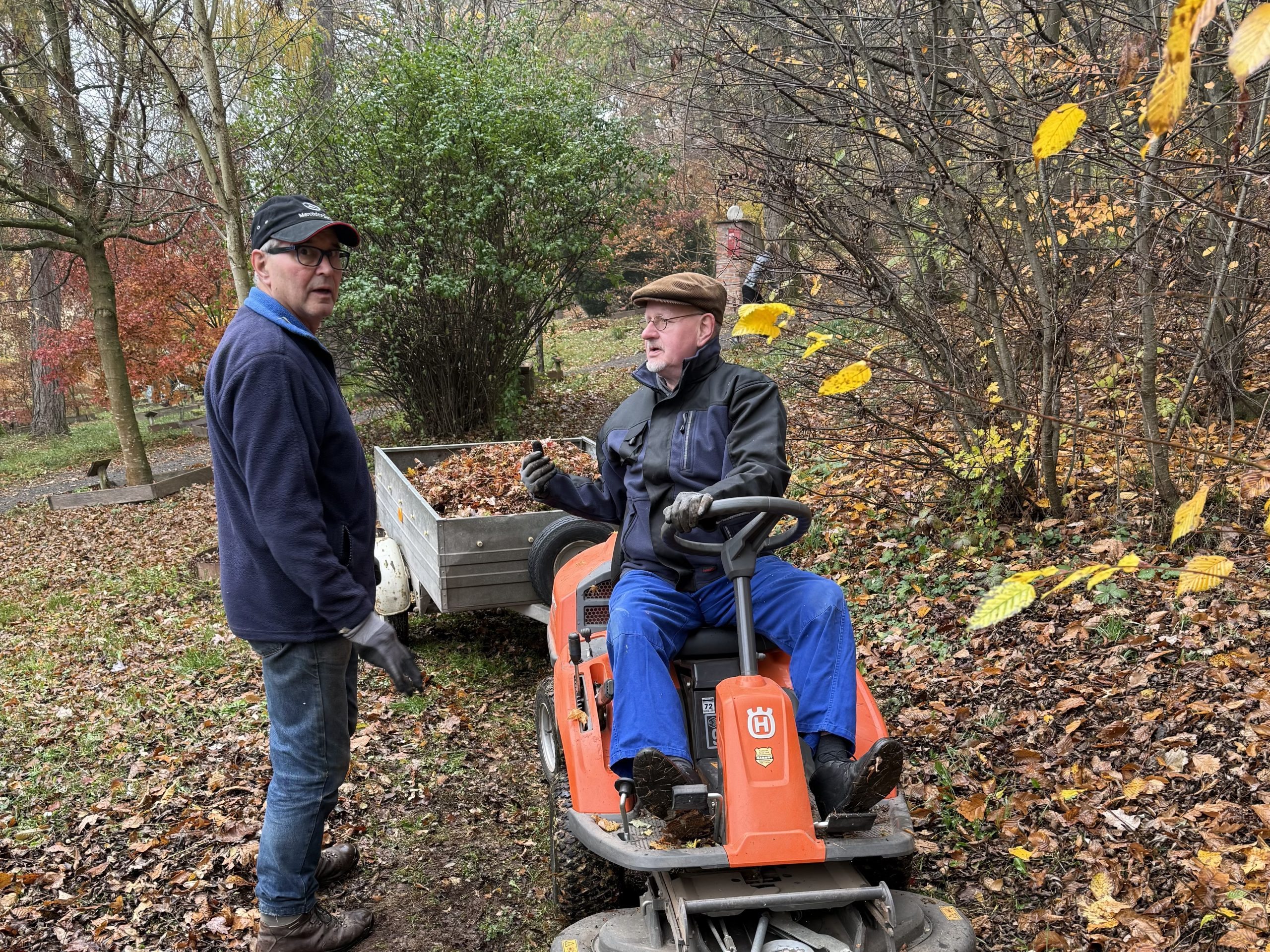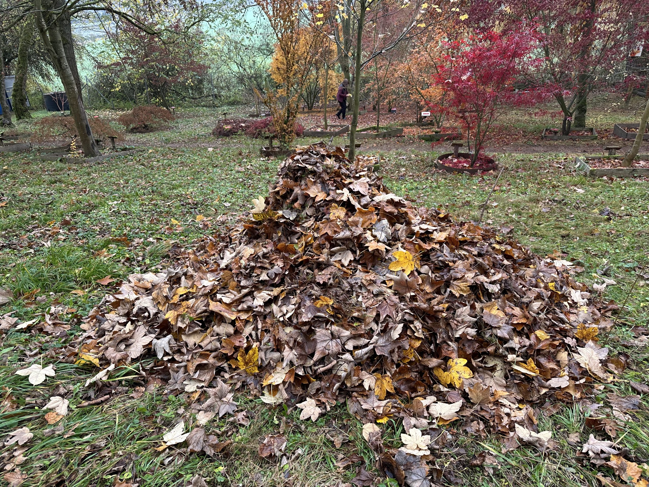 Deshalb treffen wir uns am Donnerstag, den 13.11.2025 ab 09.30 Uhr nochmals, um die großen Blatthaufen nach hinten in den Park zu transportieren. Wir freuen uns über jeden, der mit anpacken kann und helfen kommt.
