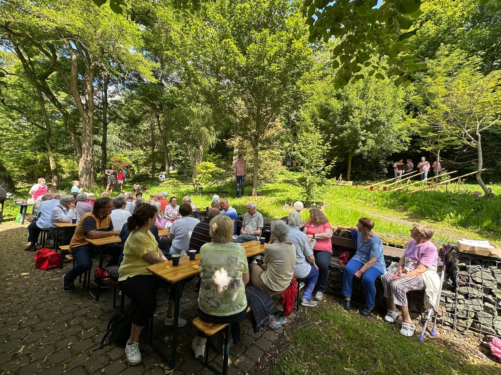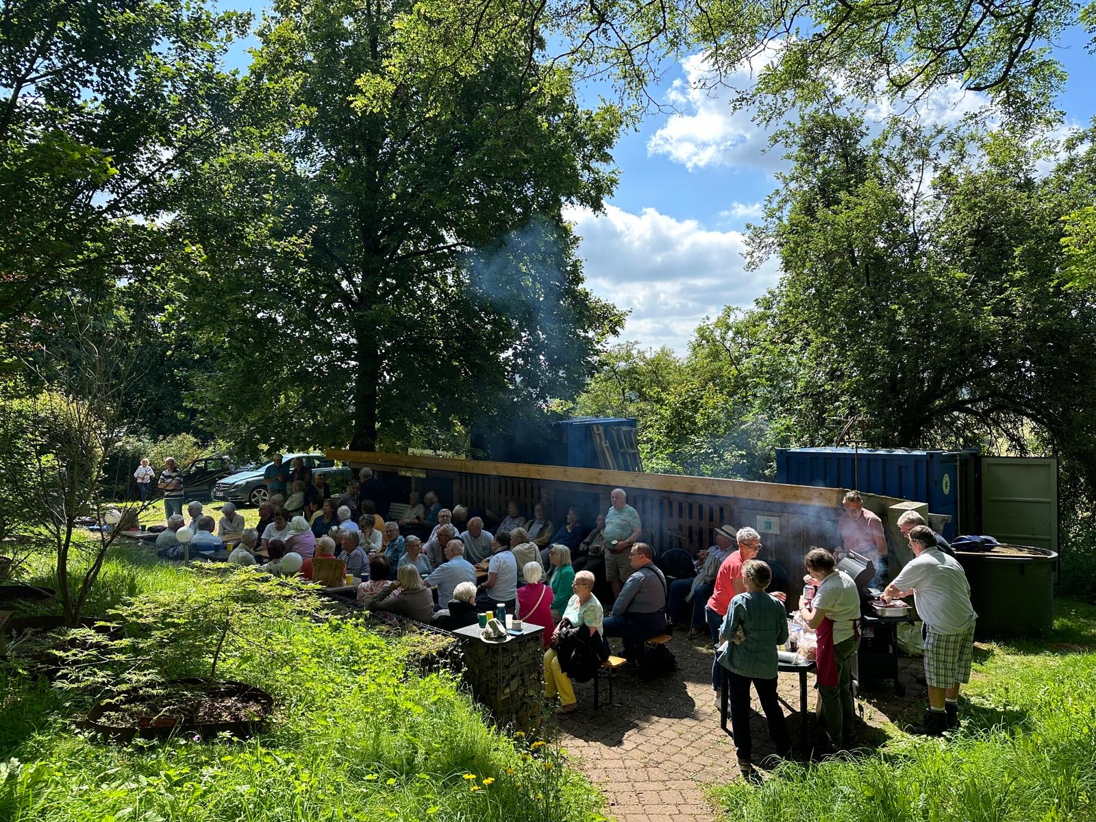 Am Sonntag, den 23. Juni 2024 waren bei schönstem Sommerwetter zahlreiche Gäste aus unseren Partnergemeinden Wilrijk und Niedernhausen bei uns zu Besuch. Unser Vorsitzender hieß sie alle herzlich Willkommen. Sie bewunderten den herrlichen Ahornpark bei einem Bummel durch das Areal, lauschten den Klängen der vier „Südharzer Alphornbläser“ und ließen sich Thüringer Rostbratwurst vom Grill schmecken.