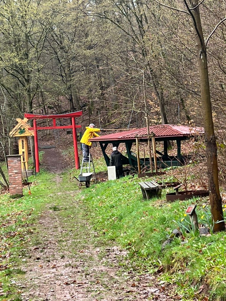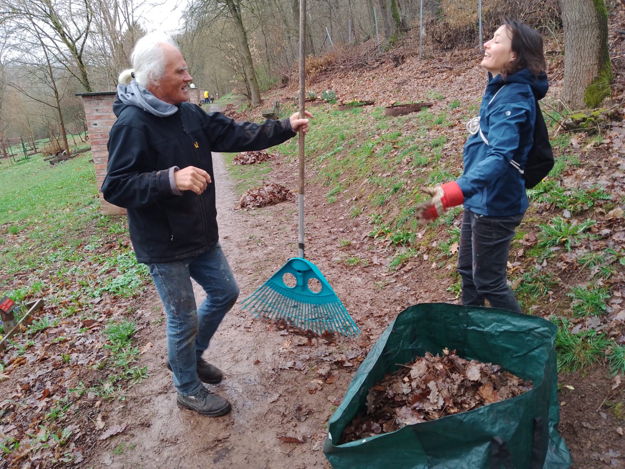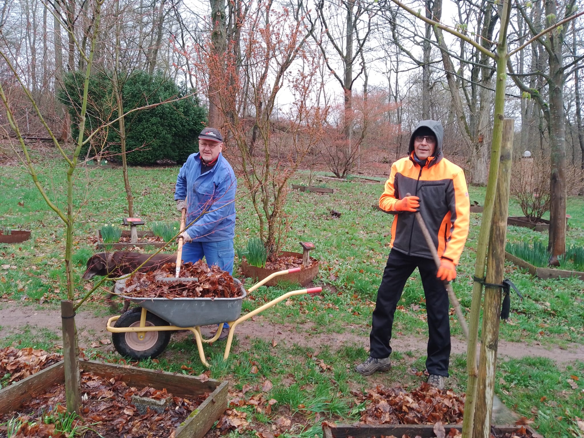 … wir wären Stückchen Weise zerbröselt. Es hat fast ununterbrochen geregnet, mal war es mehr ein Nieseln, mal mehr ein leichter Regen und manchmal, wenn der Regen eine kurze Pause einlegte, kam die Feuchtigkeit nicht von oben, sondern ausschließlich nur vom Boden. Und dennoch haben wir bei unserem ersten Arbeitseinsatz im Ahornpark wirklich viel geschafft und den Winter, so hoffen wir, endgültig vertrieben.