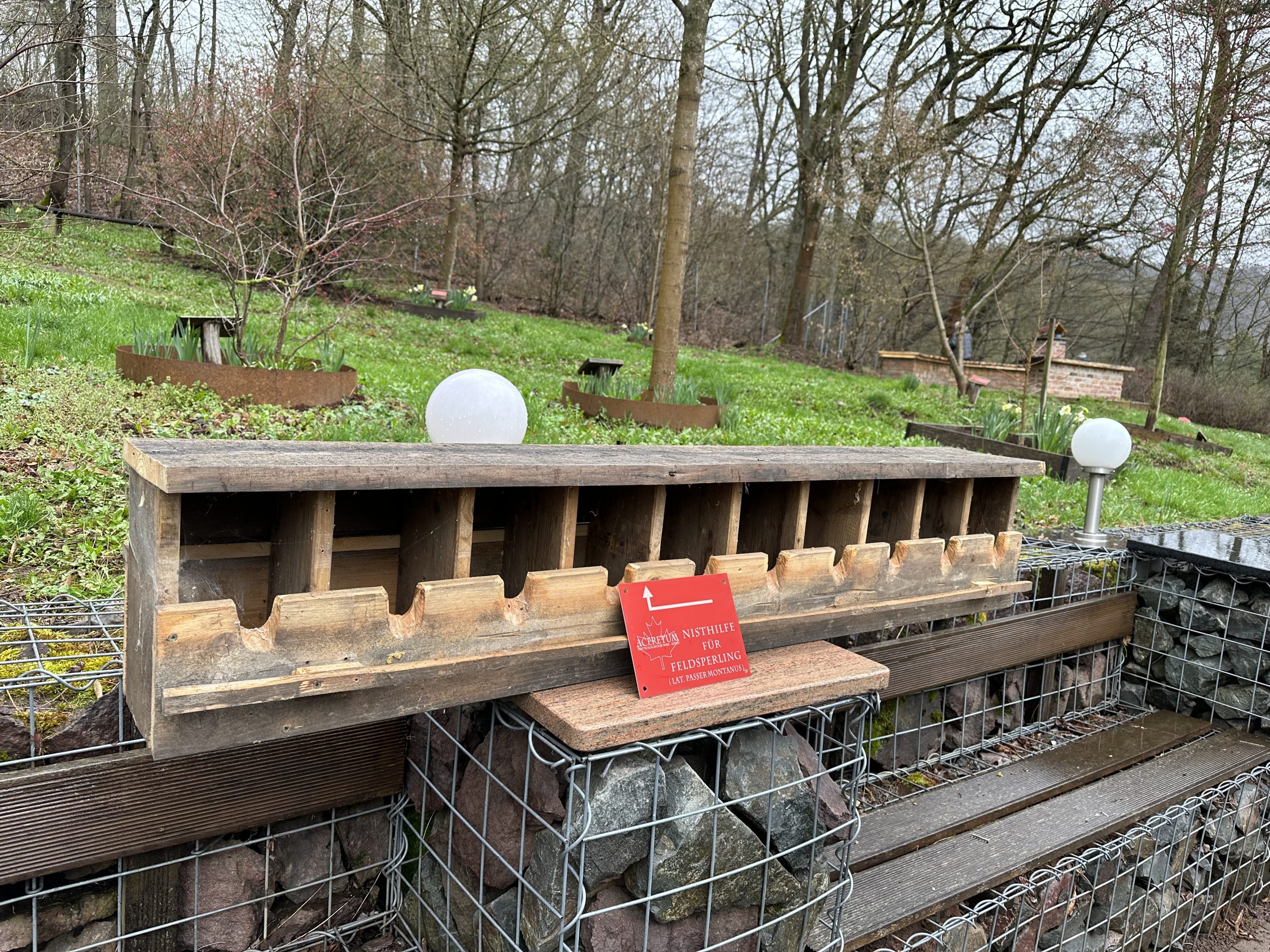 Die Nisthilfe, die wir im Schuppen gefunden haben, wird demnächst im Park aufgehängt und hoffentlich von den Spatzen in großer Schar angenommen …
