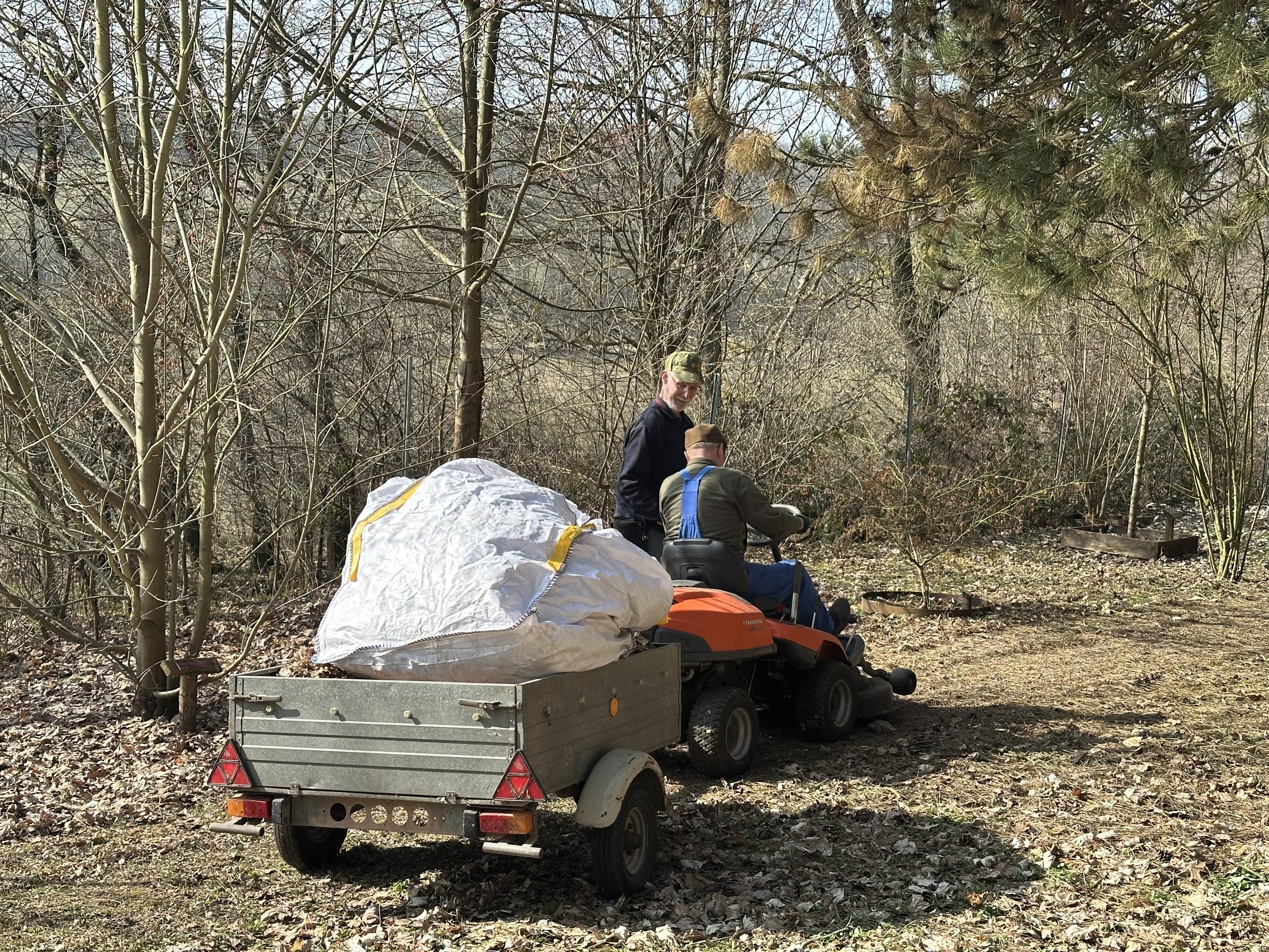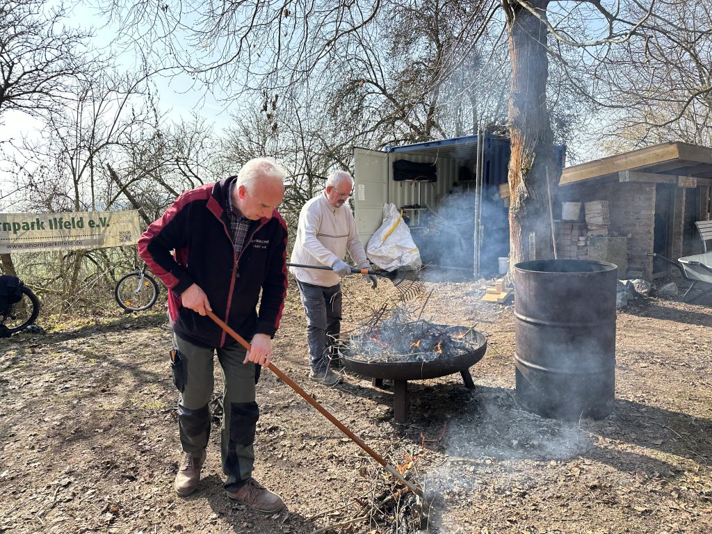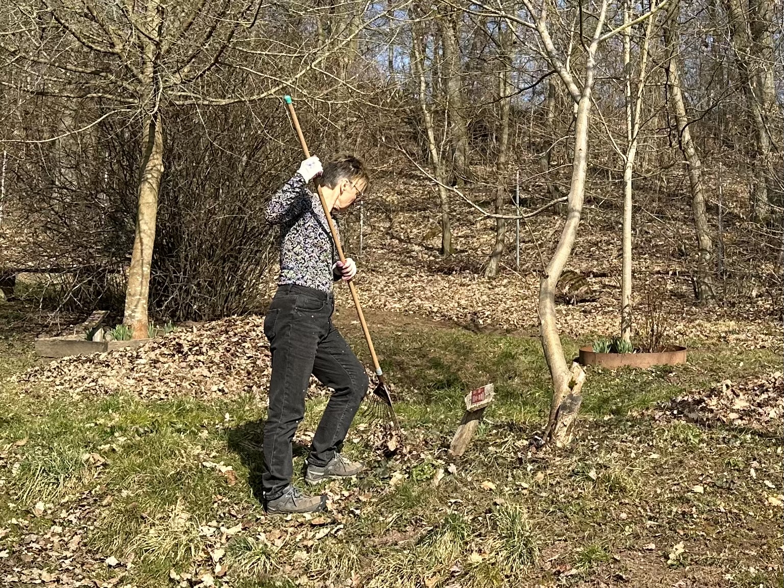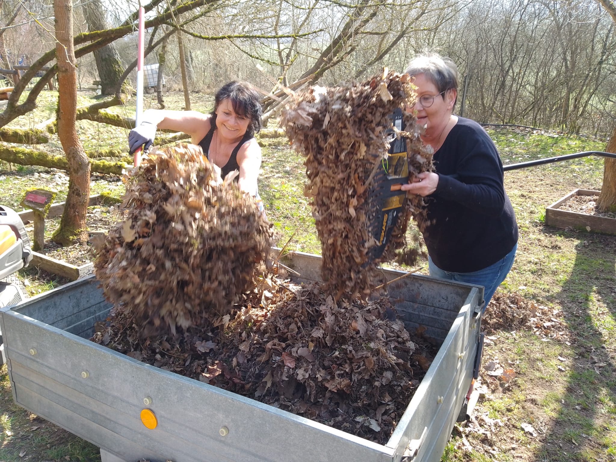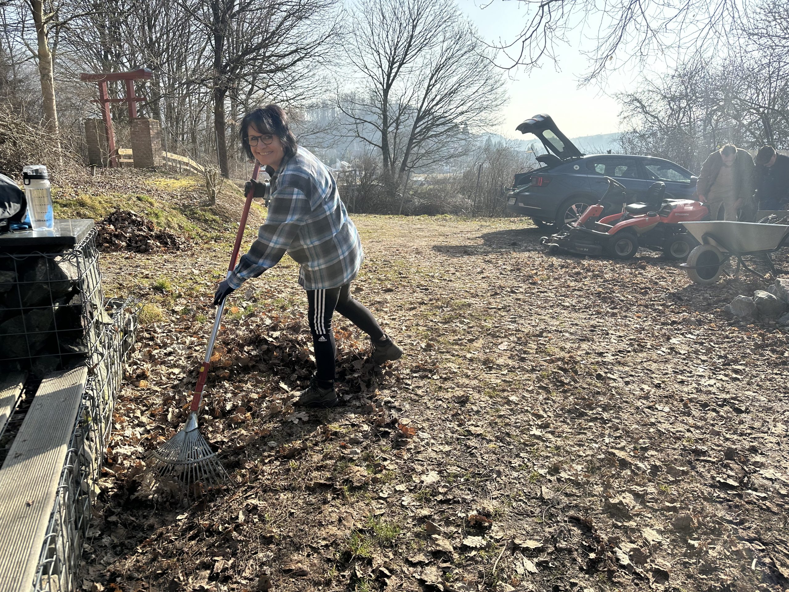…könnte man denken, zumal sie mit dem Besen schwingt und herzlich lacht. In Wirklichkeit kehrt Heidi das Hexenhaus beim Frühjahrsputz. Gemeinsam waren wir am 8.März ein Dutzend fleißiger Geister im Park und nutzen das famose Frühlingswetter. Bei bester Laune wurde der Heckenschnitt vom Herbst geräumt und verbrannt, der Container aufgeräumt und der Zaun an der Südseite von Wildwuchs befreit.
