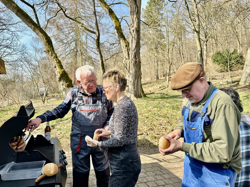 Und ganz zum Schluss gab es Bratwürste vom Rost als wohlverdiente Stärkung nach dem Arbeiten und wie immer nettes Geplaudere und aktuell die Vorfreude auf den Frühling.