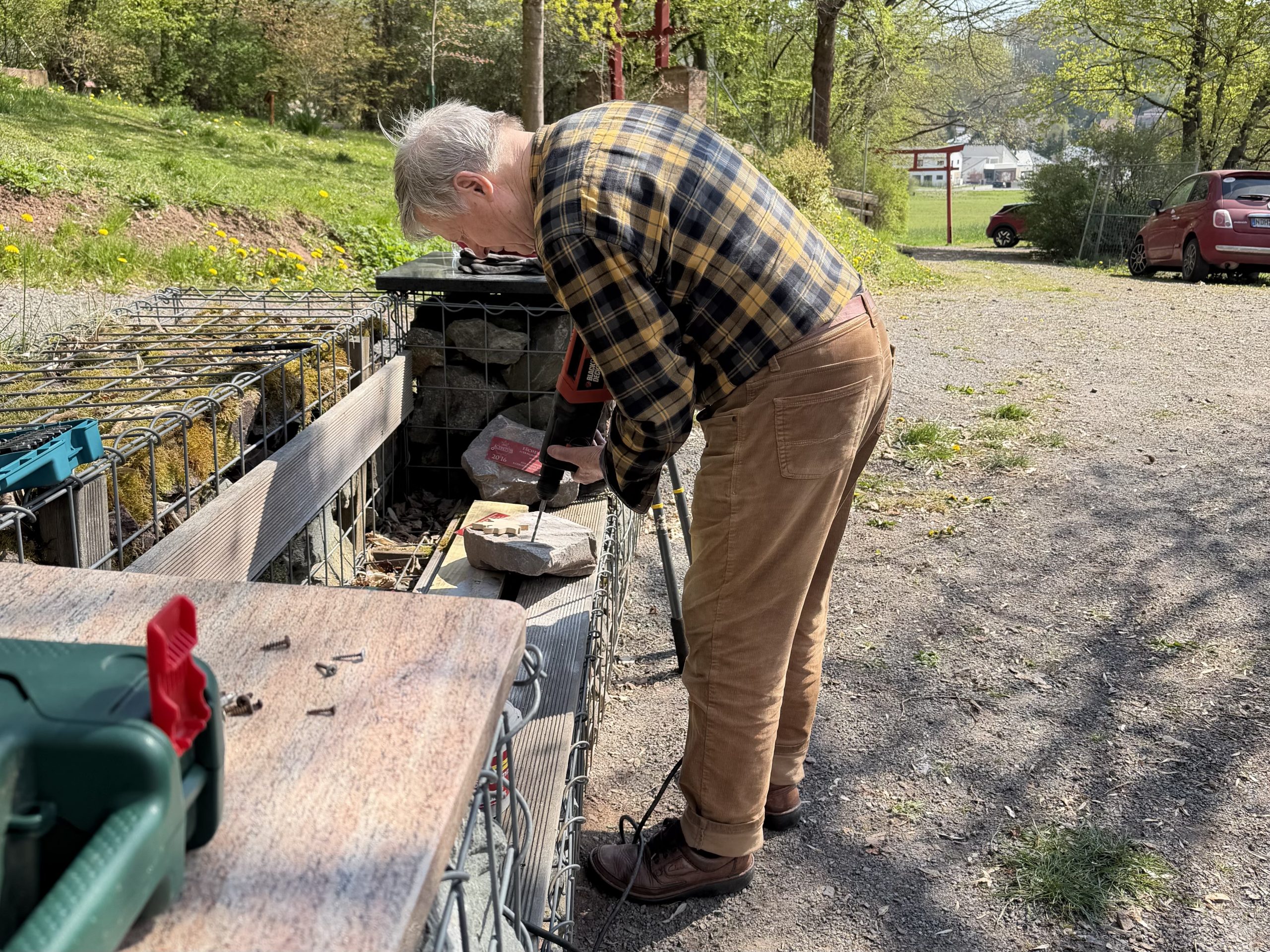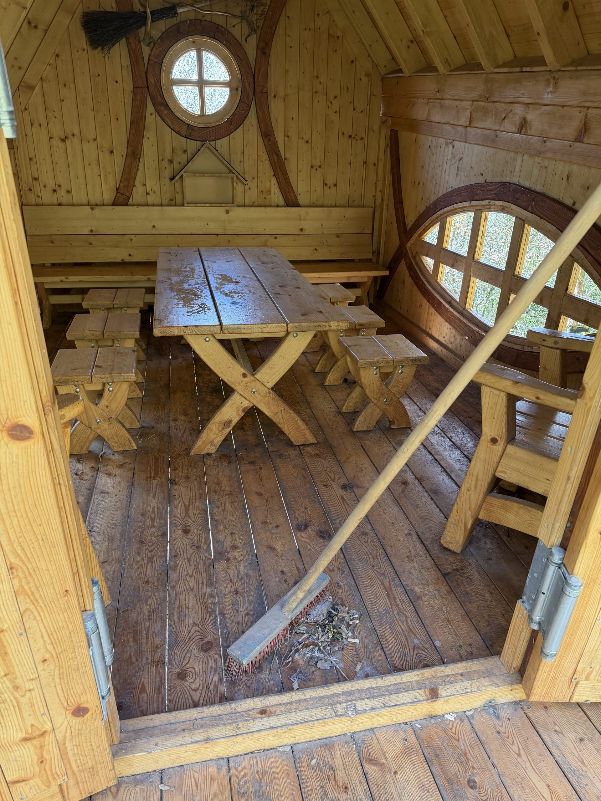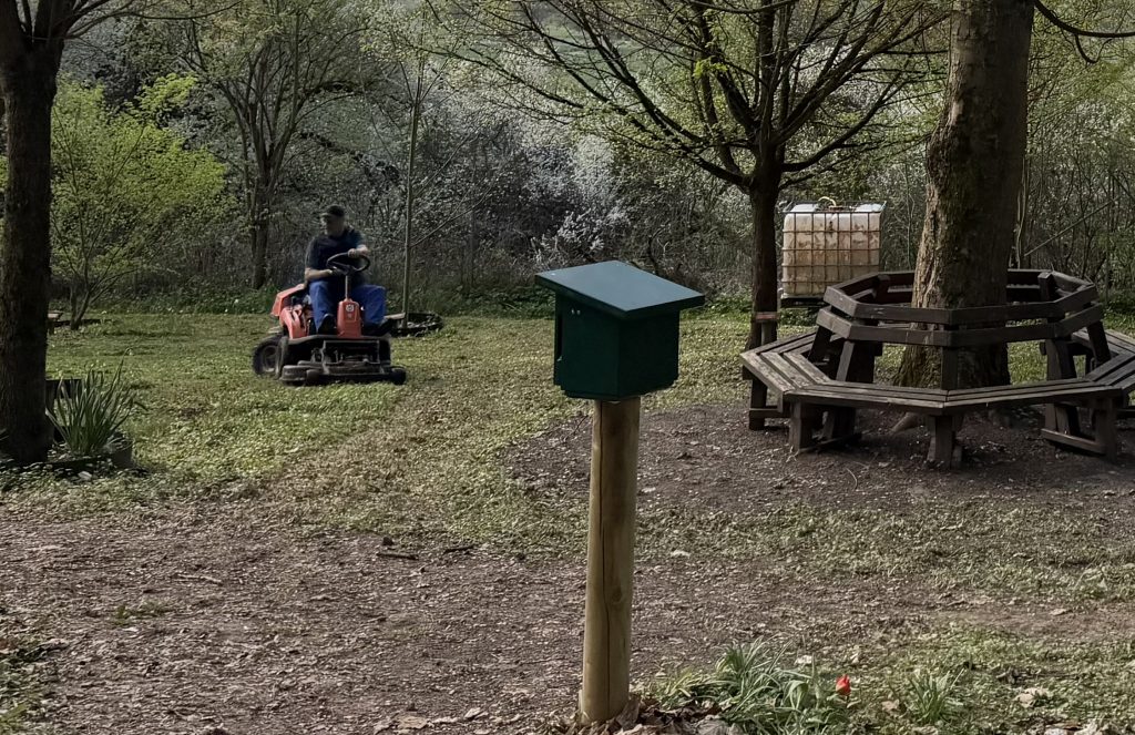 Auch war große Putzaktion; Lampen, Schilder, Bänke, das Grüne Klassenzimmer und das Hexenhaus wurden gesäubert. Der Rasen erhielt seine erste Mahd und wir haben begonnen, den Wildzaun von außen von Gestrüpp freizuschneiden. Hier wartet noch jede Menge Arbeit auf uns.