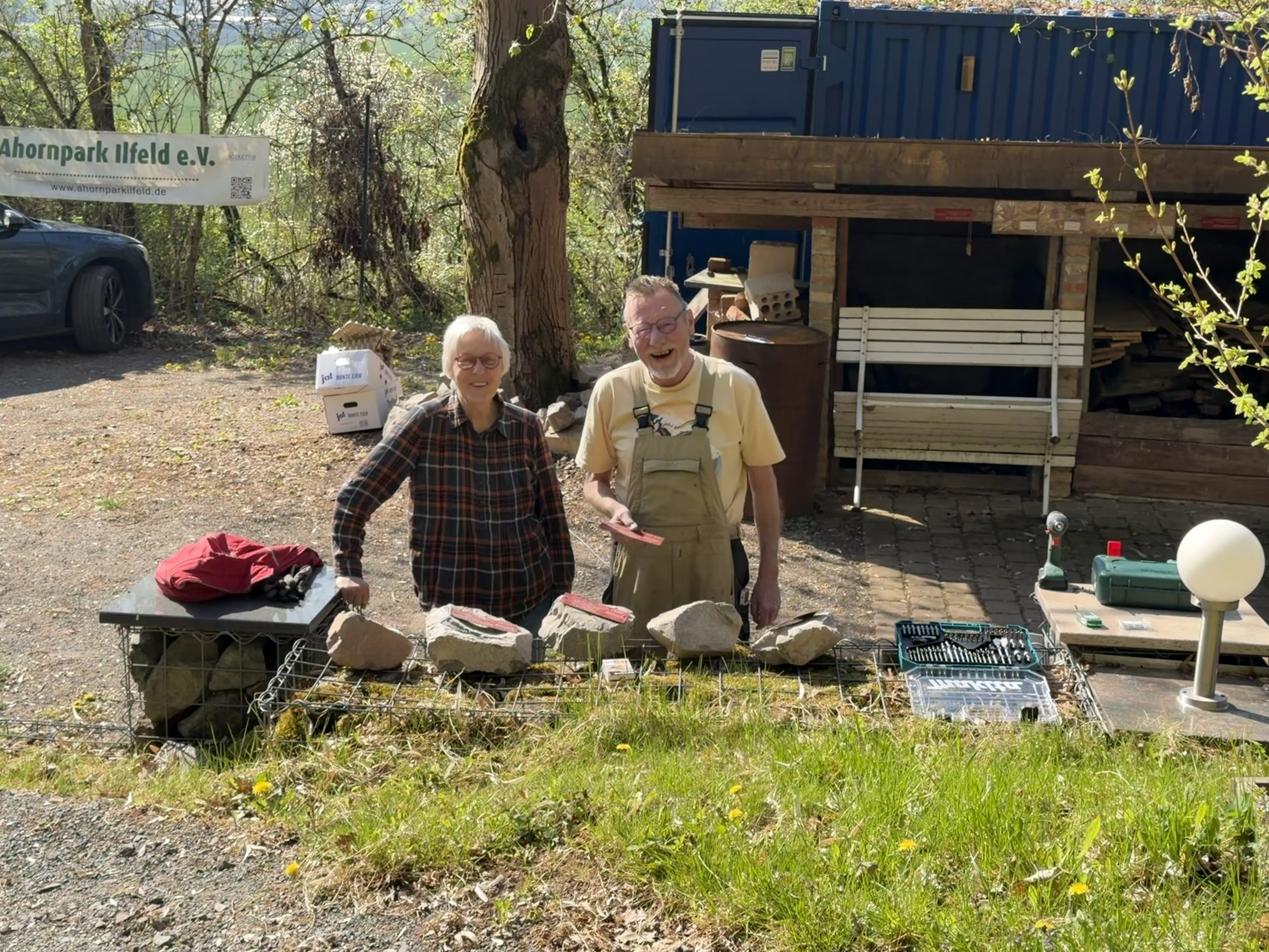 Die Steine erhielten wir als Sachspende vom Hartsteinwerk Unterberg, diese Woche wurden sie von Klaus und Martin aus dem Steinbruch abgeholt und in den Park transportiert.