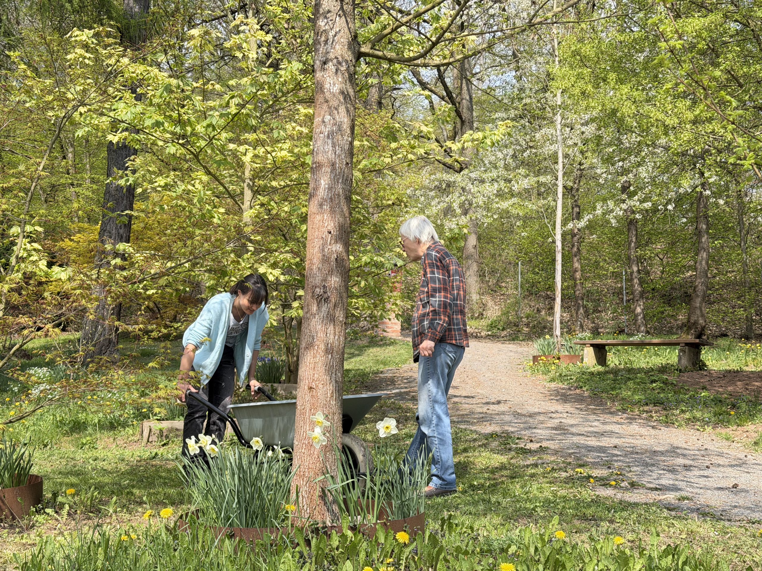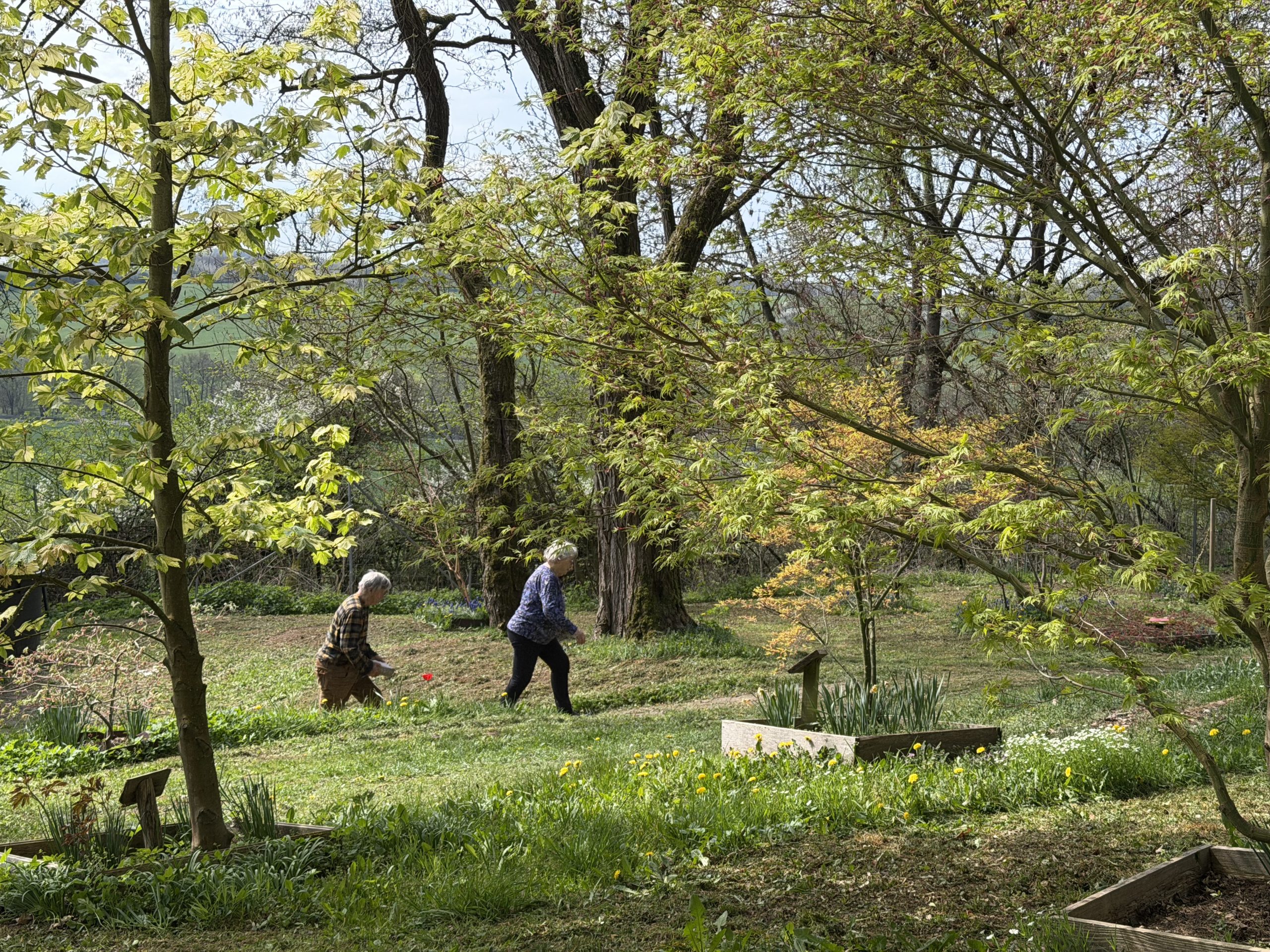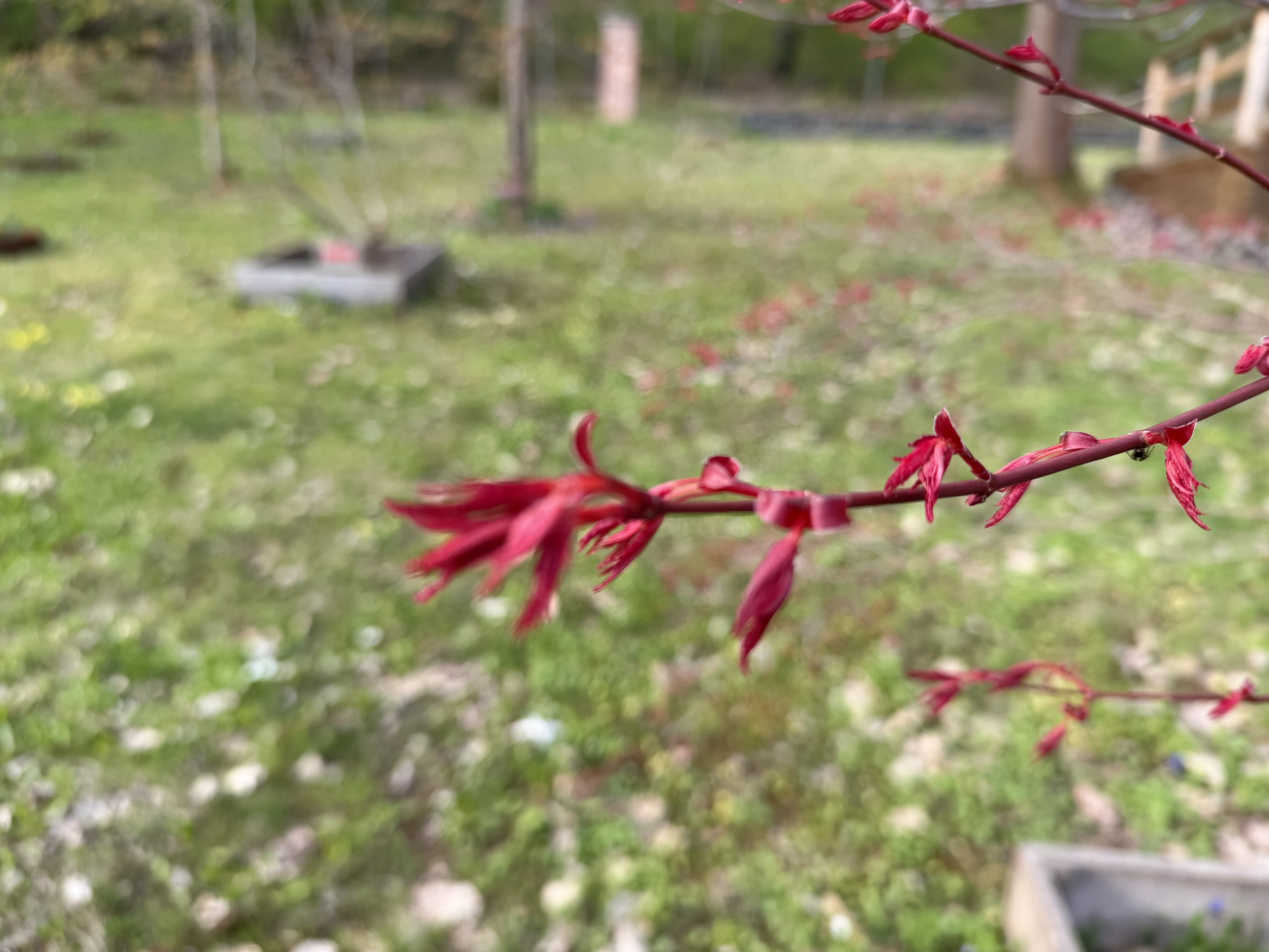 Es ist so schön, den Ahornpark beim Frühlingserwachen zu sehen, wie die bunten Frühblüher von den Ahornblüten und Blätterknospen abgelöst werden und wunderschönes frisches Grün und Rot im Sonnenlicht leuchtet.