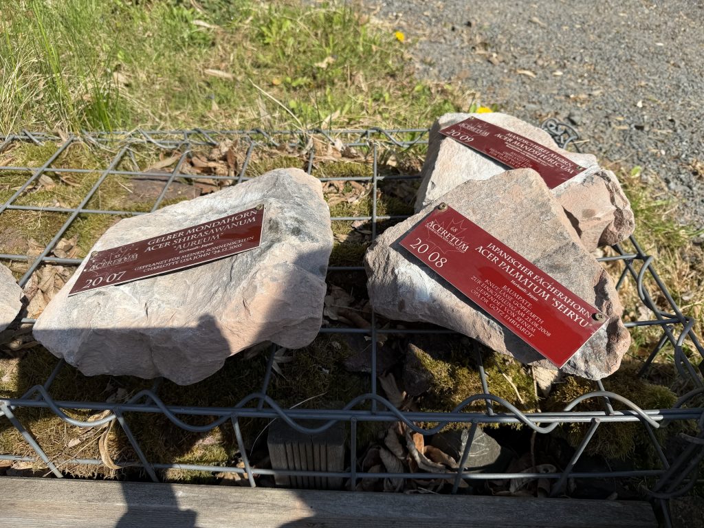 Der „Zahn der Zeit“ nagt an allem, auch an den Holzbrettchen, auf denen unsere Widmungsschilder angebracht wurden. Daher haben wir begonnen, die Schilder auf Grauwackesteinen zu befestigen, so dass sie lange den Unbilden des Wetters widerstehen können.
