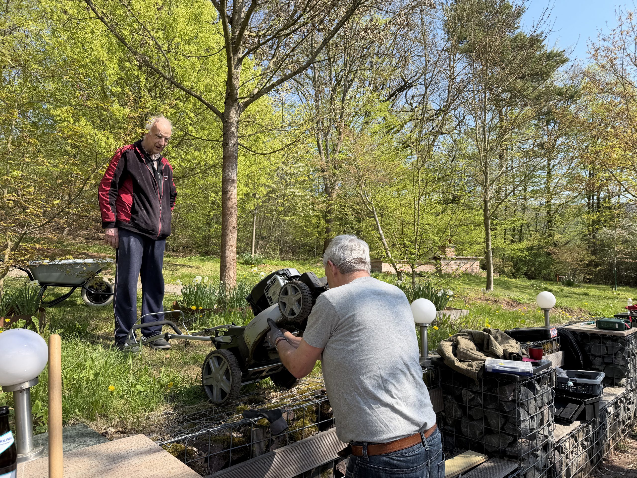 Nach getaner Arbeit gab es für uns Dutzend Ahörner bei Hackepeterbrötchen und kalten Getränken im Sonnenschein nette Gespräche.