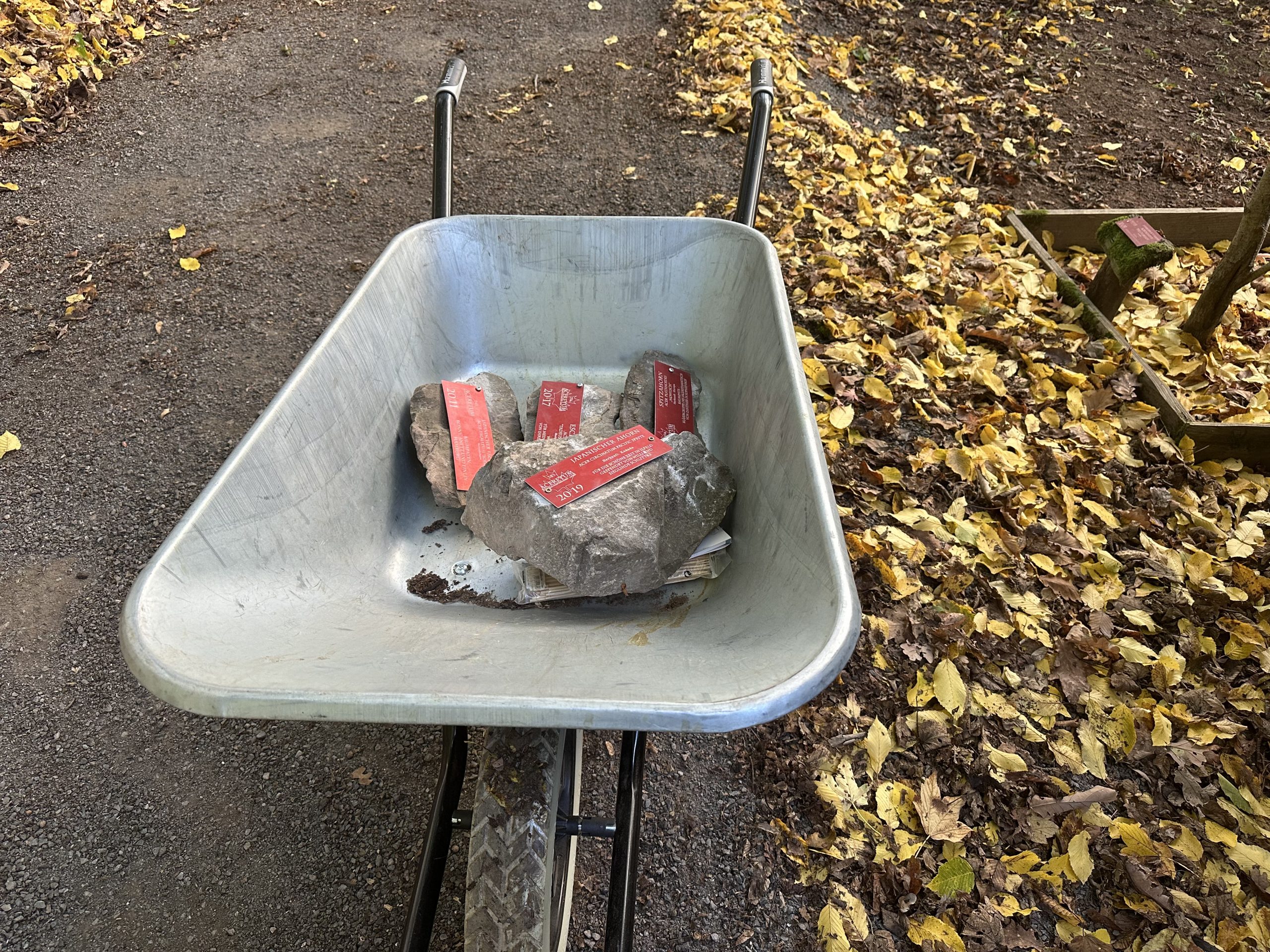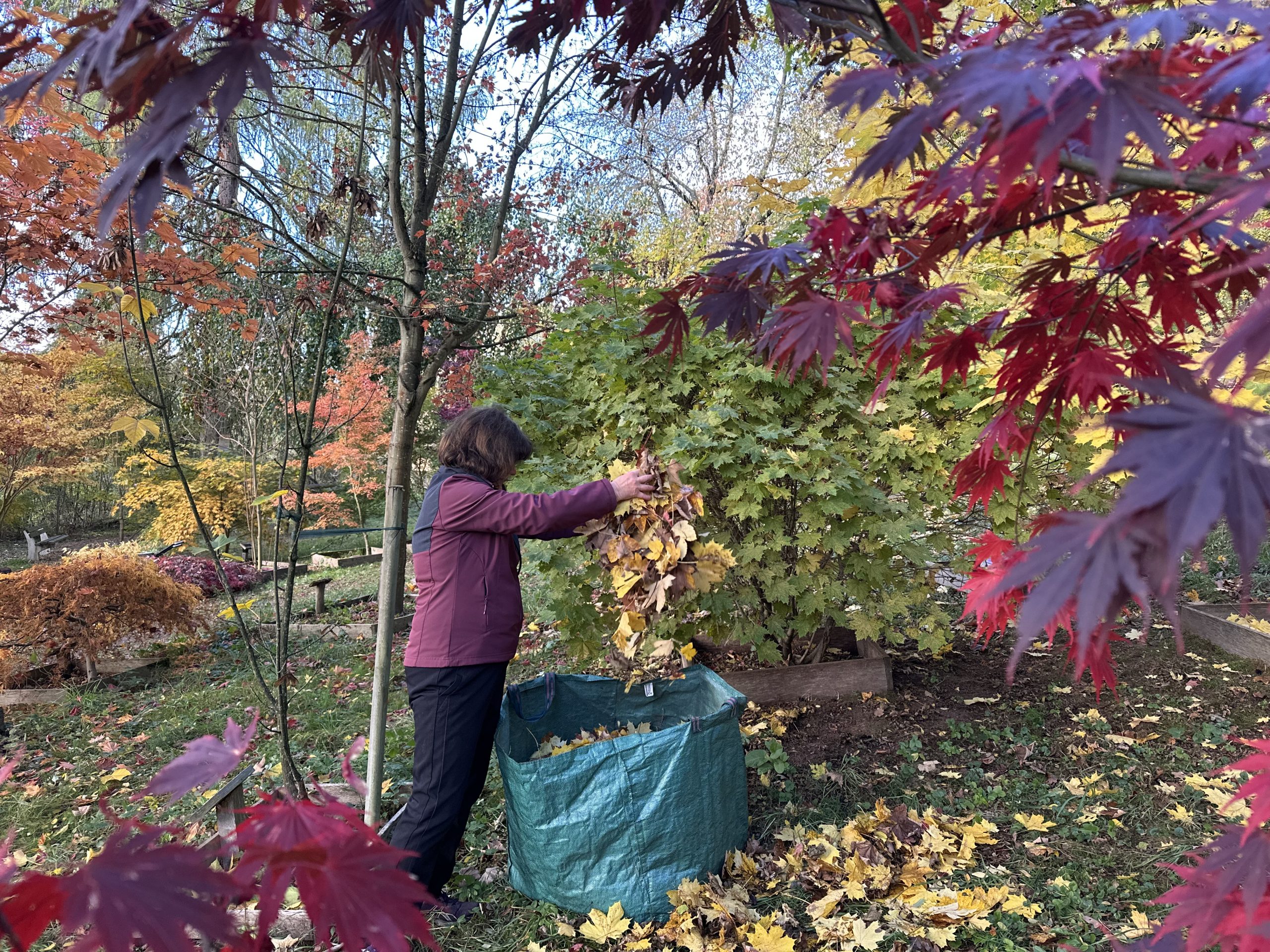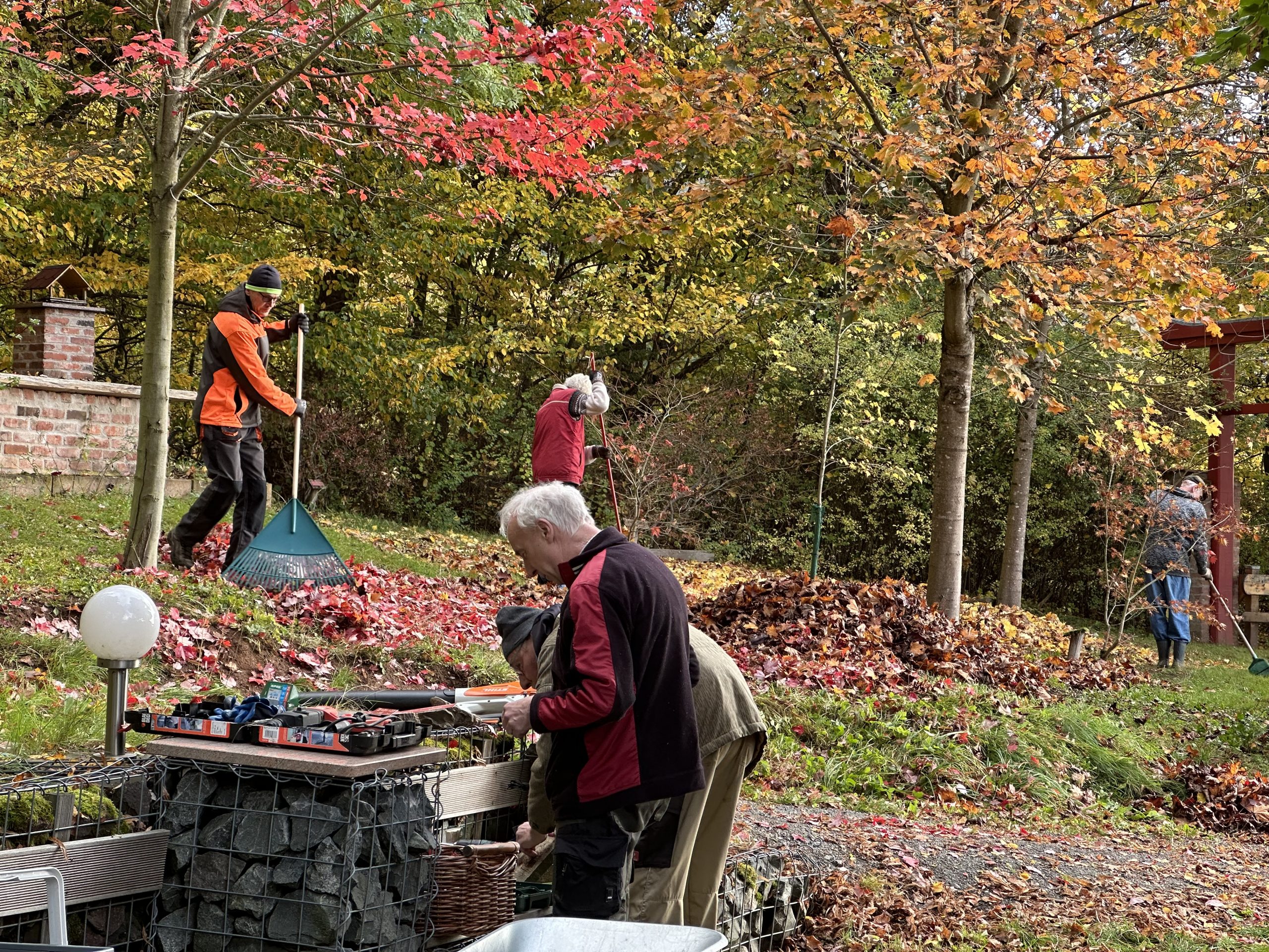 Heute konnten wir unter leuchtenden Ahornen einmal mehr den Beweis erbringen, dass die Zahl „13“ eine GLÜCKSZAHL ist, denn 13 Ahörner wirbelten ein wenig mehr als 2 Stunden in der freien Natur umher und haben unseren Ahornpark winterfest gemacht.