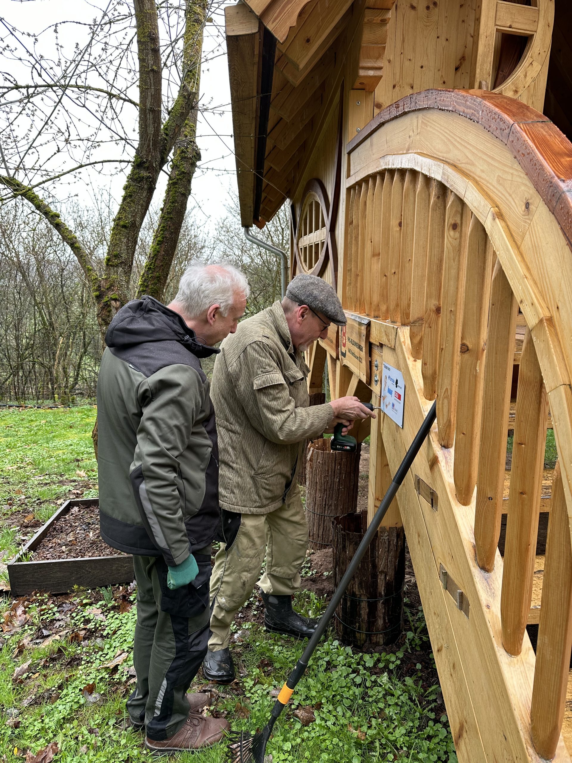 In den vergangen zehn Jahren haben wir Ahörner den Park umzäunt, kaputte Bänke erneuert, mit Gabionen Hänge befestigt und Bänke gebaut, die Bühne errichtet, Licht in den Park gebracht und eine Wasserleitung gelegt, die Rundbank am Bergahorn und das Grüne Klassenzimmer, den Spielebereich, das Hexenhaus, das Insektenhotel und die Eingangstreppe erbauen lassen, Wege neu angelegt und die anderen wieder nutzbar gemacht. Viele Sitzbänke wurden gesponsert.